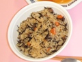 もち米のもちもちとした食感ときのこの歯ざわりが美味しい具だくさんおこわです。栗の黄色が食卓に一段と鮮やかな彩りを添えます。