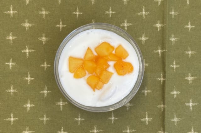 秋を感じる柿をヨーグルトと絡めました。甘すぎず、食事を締めくくるデザートにぴったりです。