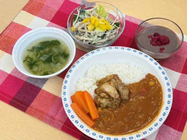 スパイスの香りや、酸味、甘味など様々な味わいをバランスよく楽しめる献立です。 サラダなどの彩りも豊かで、見た目からも食事を楽しめます。