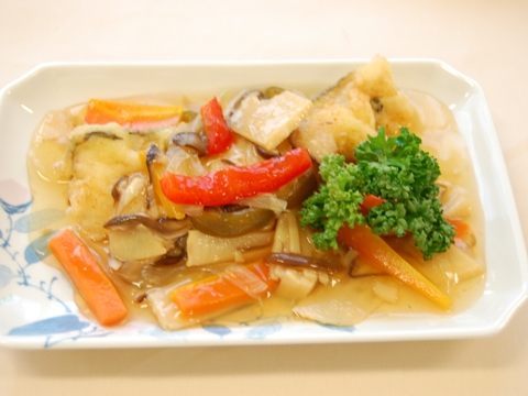 - 器にたらを盛り、あんをかけて、横にパセリを添える。