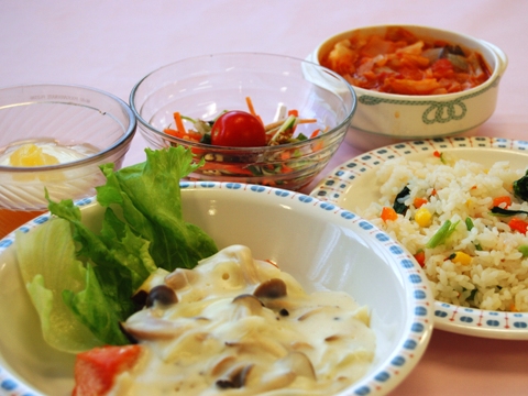 野菜は1日350gを摂取することが目標とされています。今回のメニューは野菜をたくさん使っています。全部食べると目標量の7割以上の野菜が摂取することができます。