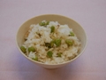 ご飯に枝豆とひじきを混ぜた、彩りの良い混ぜご飯です。味の濃いおかずとの相性バッチリです。