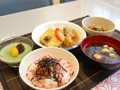 ・じゃこまめごはん ・たらのふんわり卵あんかけ ・シャキシャキ野菜の梅酢風味 ・小松菜のあったかみそ汁 ・ほっくりかぼちゃのプルフワ