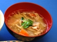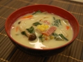 豆乳が入った温かいうどんです。具だくさんなのにとってもヘルシー。