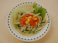 色鮮やかな見た目のきれいなサラダです。酸味のきいたさっぱりしたドレッシングで、ビタミンCもたっぷり摂れます。隠し味はだし汁です。