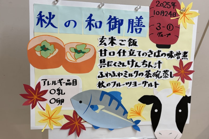 秋が旬の食材の柿やさばを使い、食事で季節を感じられる工夫をしました。エネルギーは抑えつつも満足できる献立です。