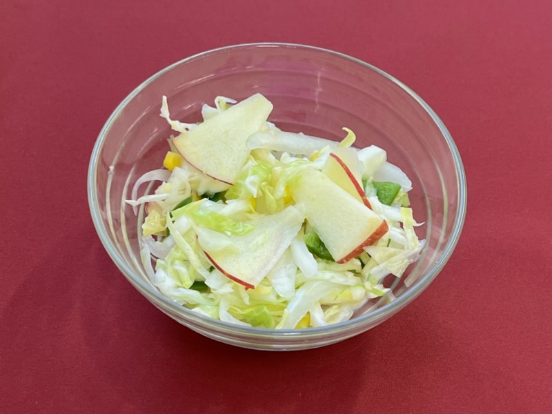 秋の味覚であるさつまいもとりんごを主役に、酸味のあるヨーグルトを混ぜ合わせ、酸味と甘味の調和がとれた副菜です。